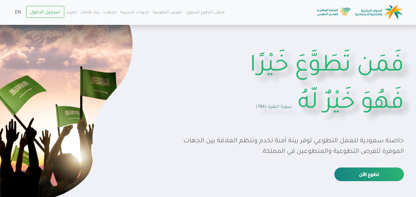 - الدخول إلى موقع المنصة الوطنية للعمل التطوعي.