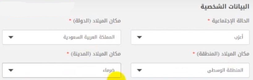 - إدخال مكان الميلاد والمدينة والمنطقة والحي.