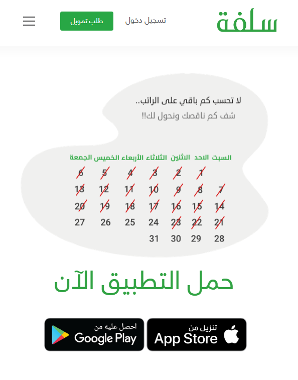 - سيتم حينها فتح صفحة جديدة قم من خلالها بتحميل تطبيق سلفة من المتاجر الإلكترونية.