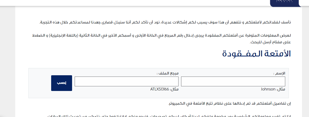 الاستعلام عن المفقودات في الخطوط الجوية الكويتية
