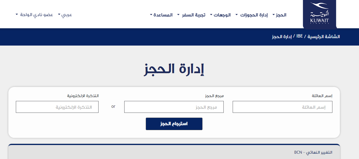 - قم بالذهاب إلى الموقع الرسمي الإلكتروني الخطوط الجوية الكويتية.