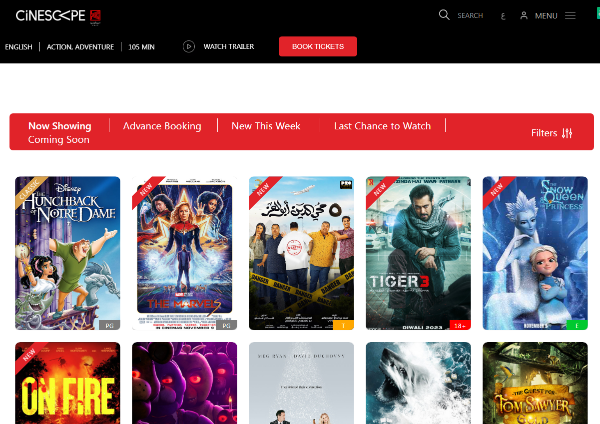 يوجد الكثير من الأفلام التي يتم عرضها في سينما سينسكيب بالوقت الحالي، وهي الأفلام التي يتم من خلالها تلبية احتياج الكثير بعامل المتعة والإثارة والتشويق الذي يميلون إلى الاستمتاع به في مشاهدة السينمات، ومن خلال النقاط التالية يتم عرض الأفلام المتاحة: