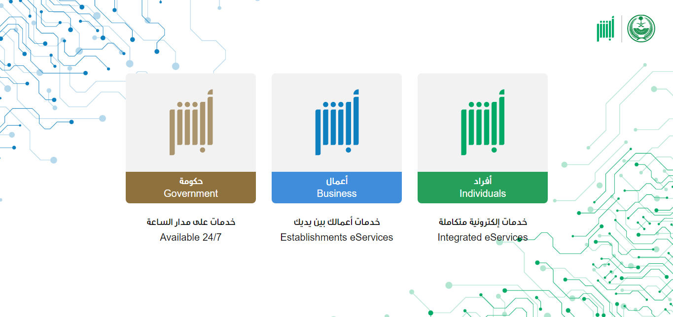 - الدخول إلى منصة أبشر للخدمات الحكومية.