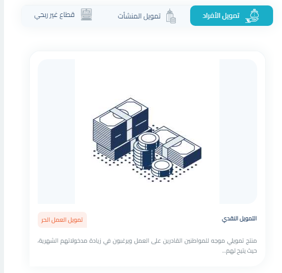 - يتم تحديد نوع التمويل وذلك على حسب ما إذا كان تمويل أفراد أو أعمال أو تمويل قطاع غير ربحي.