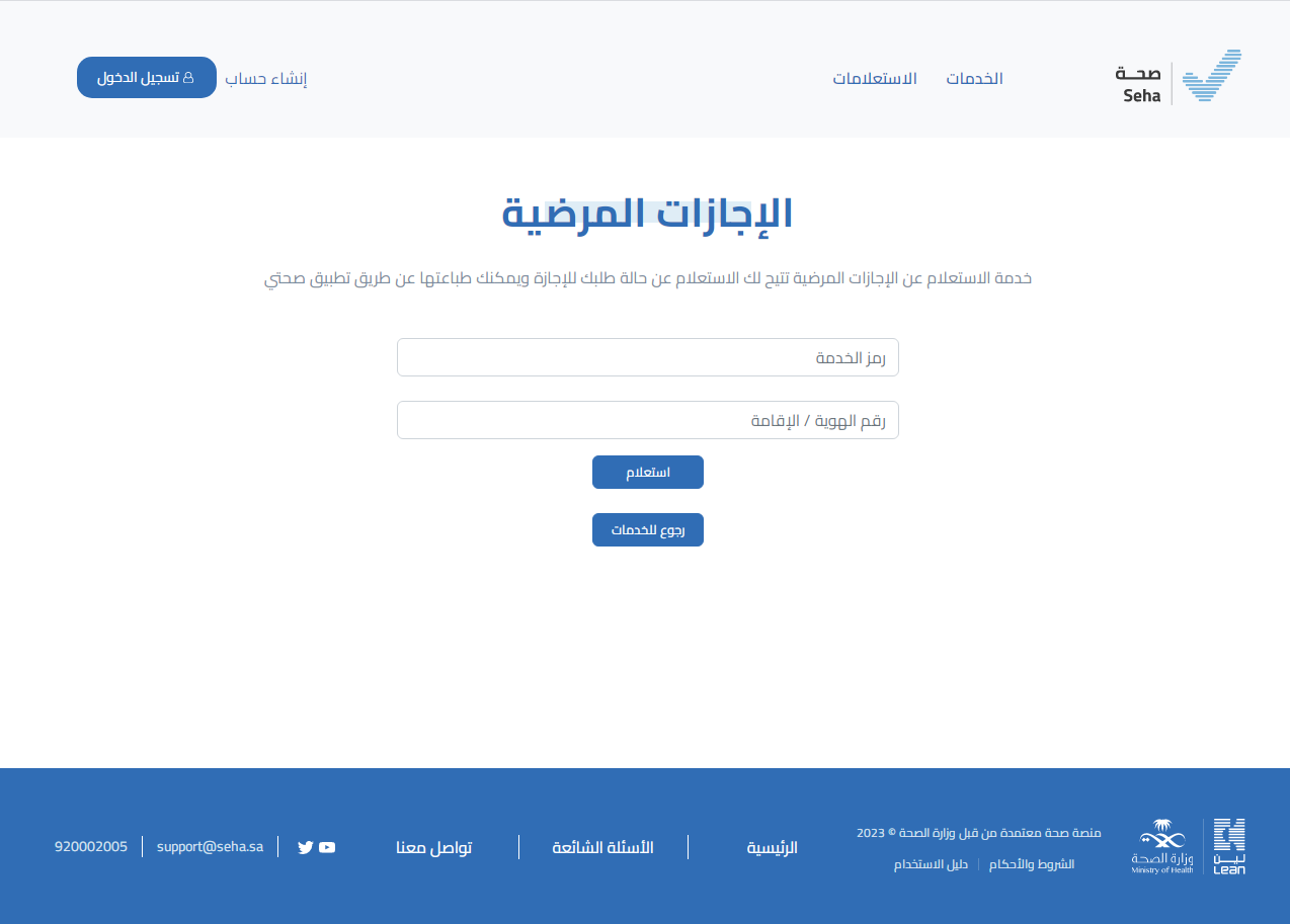- انتقل إلى خدمة الاستعلام عن الإجازات المرضية.