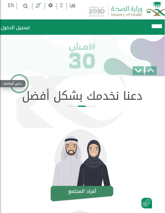 - قم بالدخول بشكل مباشر إلى الموقع الإلكتروني الرسمي لوزارة الصحة السعودية من خلال الإنترنت.