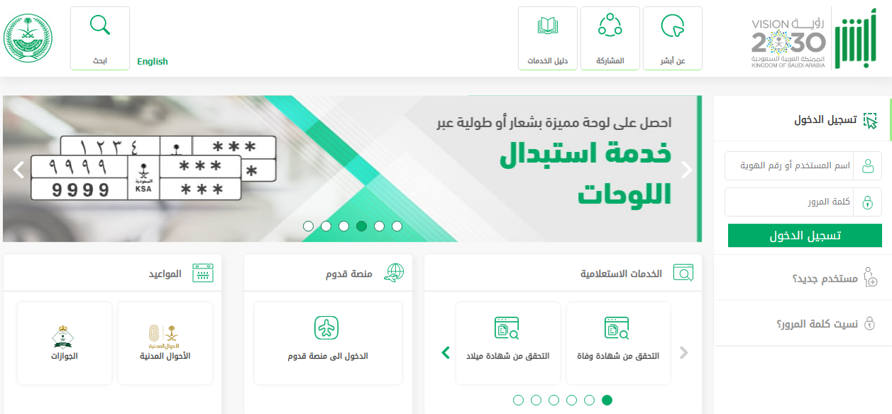 - الدخول إلى الموقع الإلكتروني لمنصة أبشر.