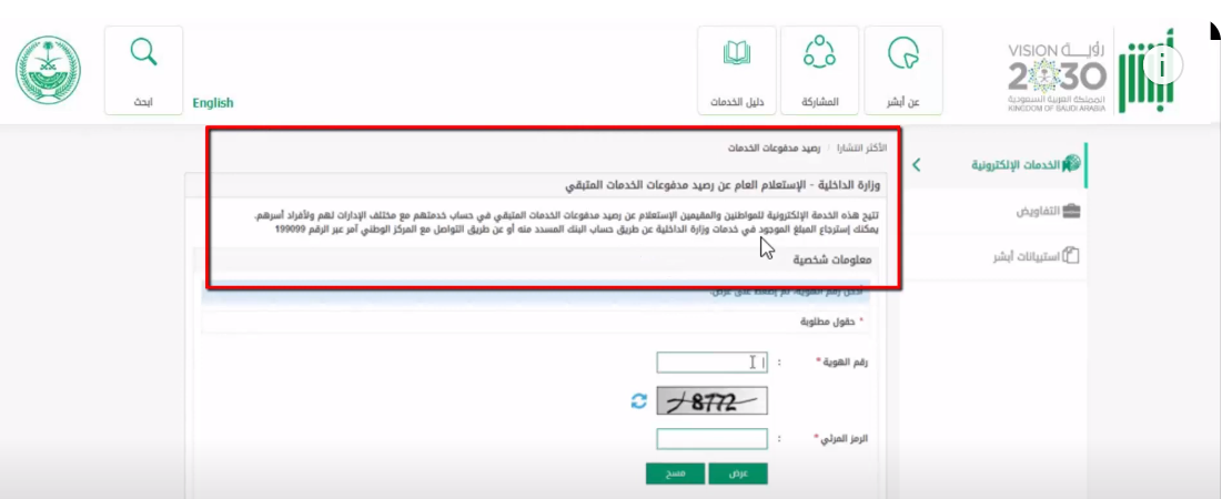 - ادخل بيانات الاستعلام المطلوبة (رقم الهوية، والرمز المرئي على الشاشة).