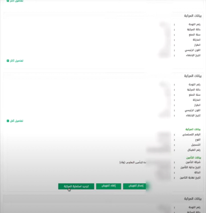 - امتلاك المتقدم على طلب التجديد وثيقة تأمين جارية الصلاحية للسيارة.