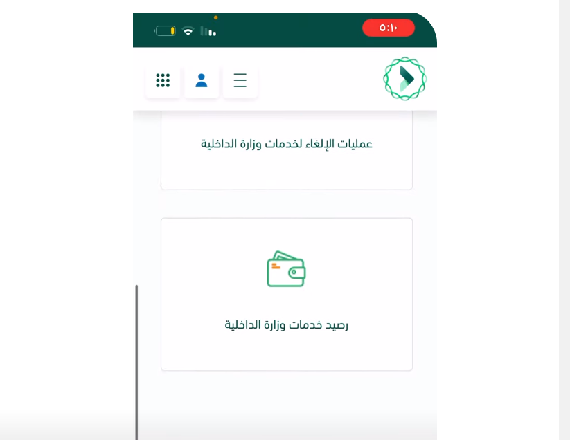 - اختر أيقونة رصيد وزارة الداخلية.