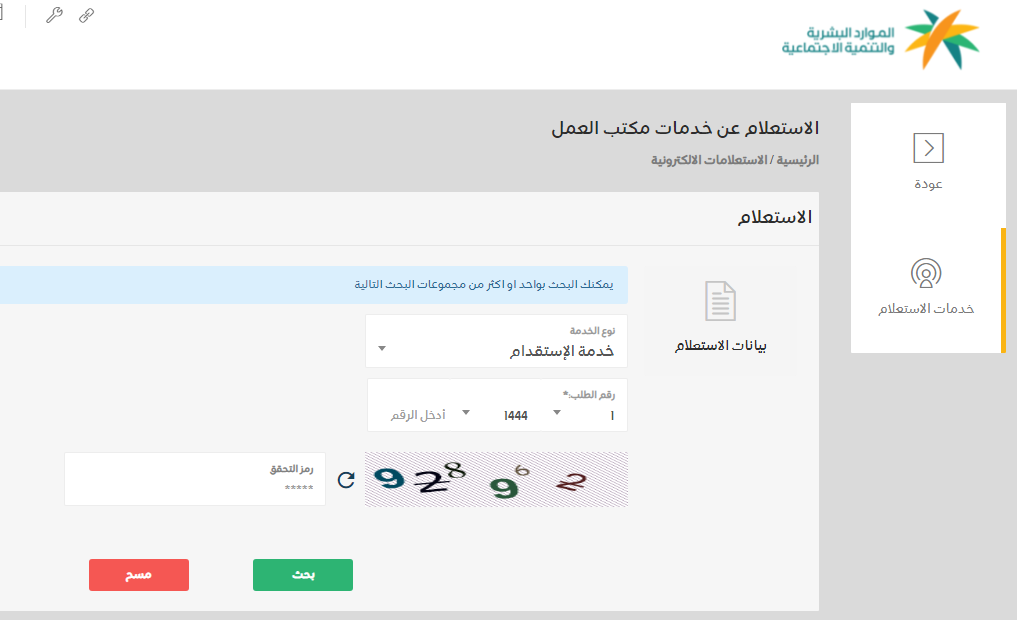 - اذهب إلى المنصة الرسمية الإلكترونية الموارد البشرية والتنمية الاجتماعية.