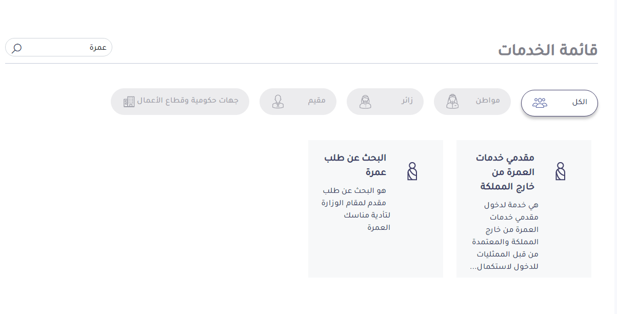 - ثم قم بالنقر فوق خدمة البحث عن طلب عمرة.