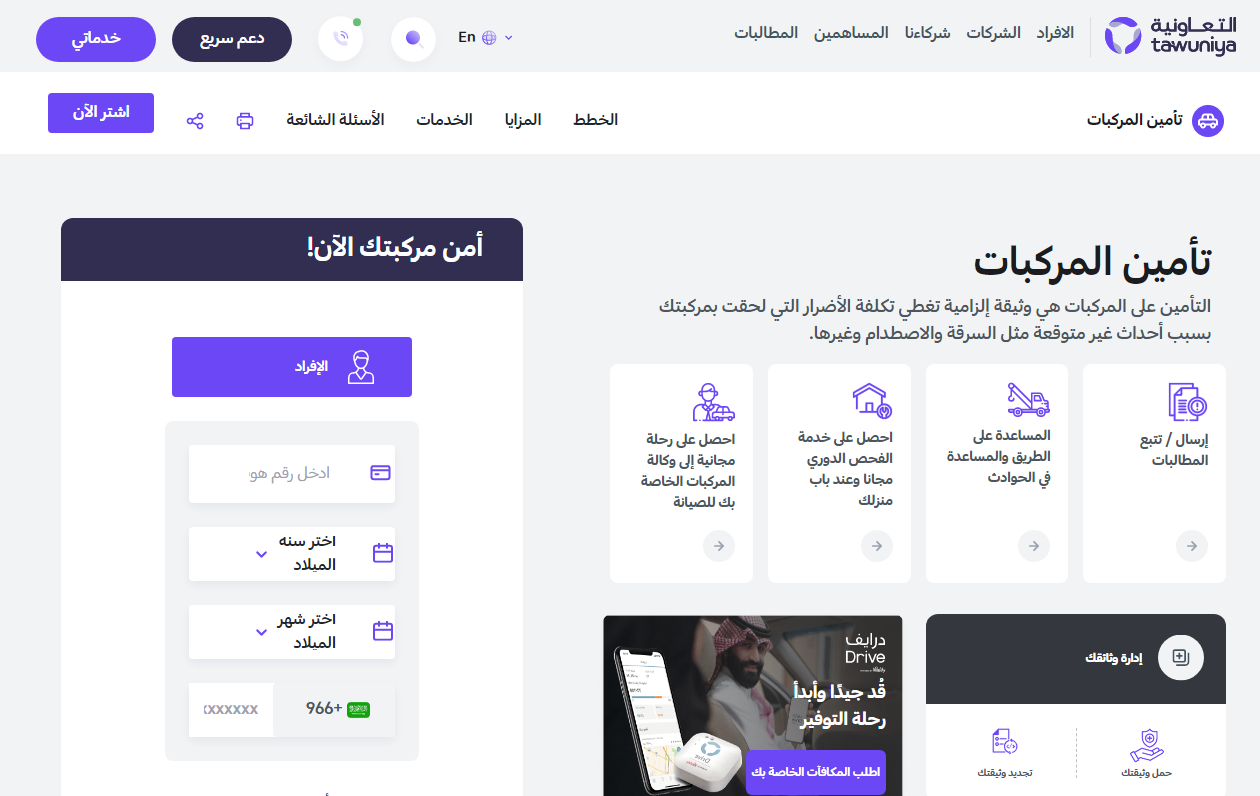 كيف اسجل في تأمين التعاونية للمركبات