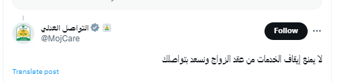 - توضيح وزارة العدل يُفيد بأن عقد الزواج لا يُمنع بسبب إيقاف الخدمات.