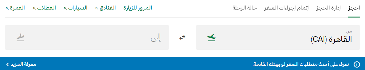 - النقر على حجز وإدارة الرحلات وهي من الخدمات الظاهرة أعلى الصفحة.