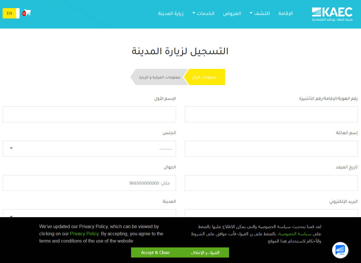 يمكنك الحصول على تصريح زيارة لمدينة الملك عبد الله الاقتصادية من خلال اتباع سلسلة من الإجراءات التالية: