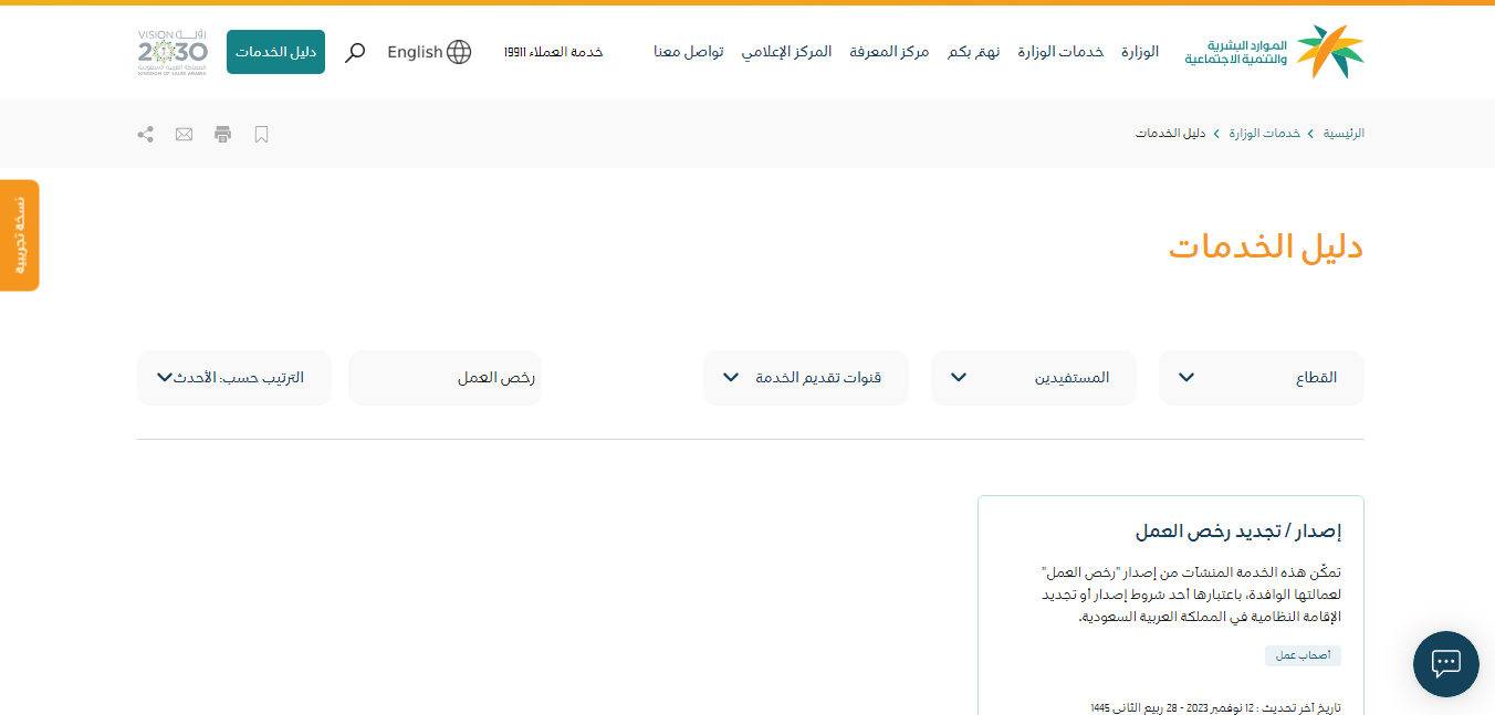 - ثم يتم تحديد خدمة إصدار رخص العمل.