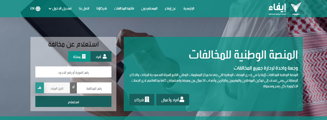 إن من ضمن أفضل المنصات الرقمية الموجودة في السعودية منصة إيفاء، وذلك لأنها تقوم بتقديم العديد من الخدمات المميزة التي تميزها عن غيرها من المؤسسات الحكومية، حيث تقوم بعرض كافة المخالفات المسجلة على الشخص في السجل الحكومي، بجانب إمكانية التقسيط على دفعات، ويمكن القيام بذلك عن طريق تطبيق خطوات طريقة سداد المخالفات المرورية التالية: