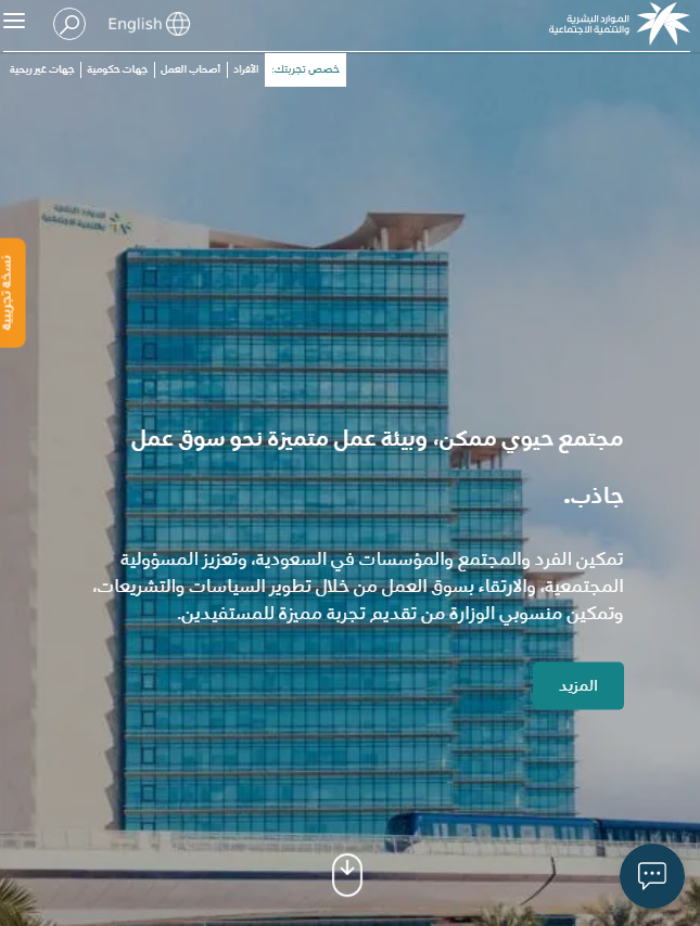 - قم بالدخول بشكل مباشر إلى الموقع الإلكتروني الرسمي الخاص بوزارة العمل والتنمية الاجتماعية السعودية من خلال الإنترنت.