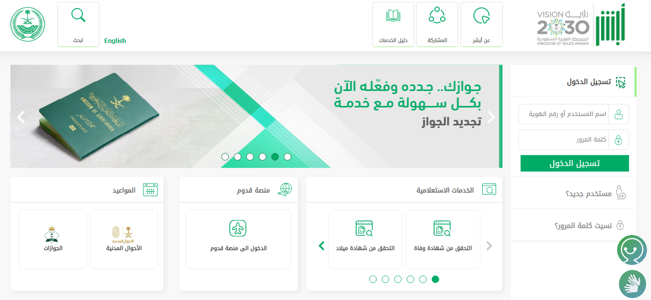 - قم بالدخول إلى المنصة الرسمية الإلكترونية أبشر.