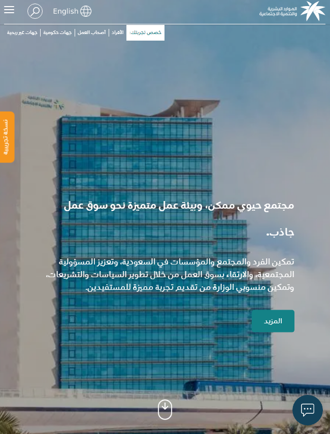 - قم بالدخول بشكل مباشر إلى الموقع الإلكتروني الرسمي لوزارة الموارد البشرية والتنمية الاجتماعية من خلال الإنترنت.