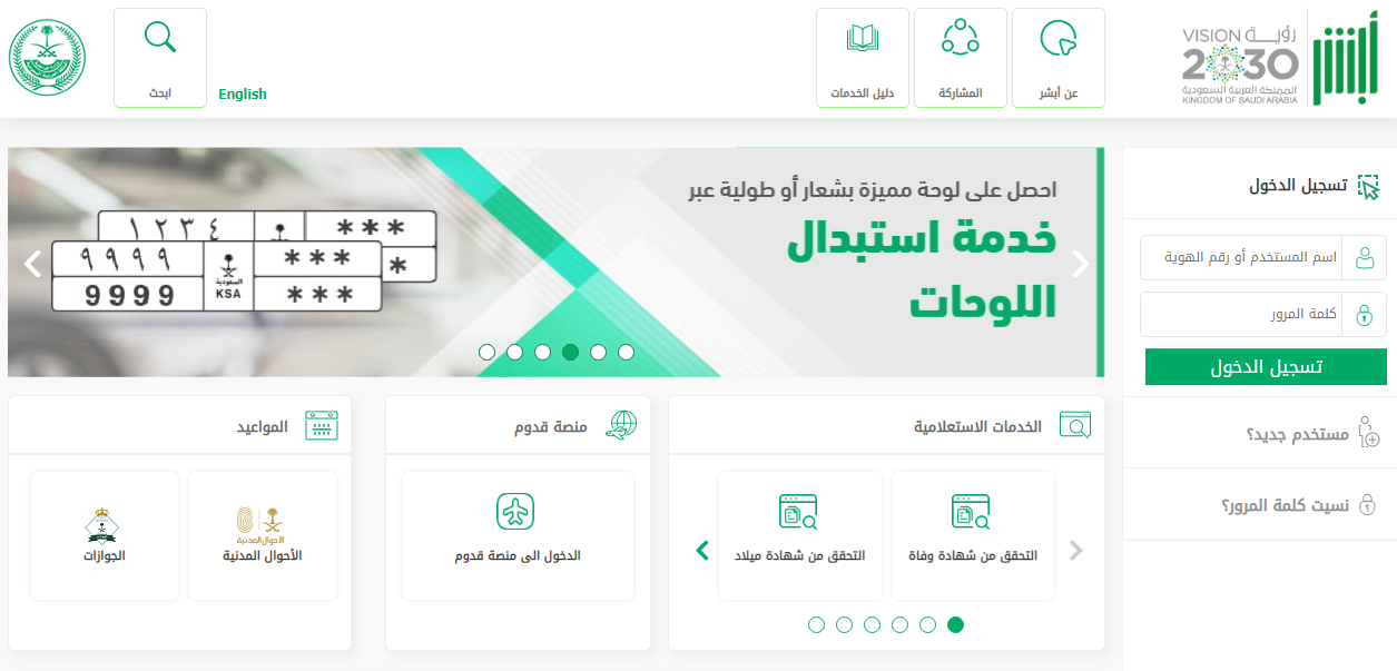 - التوجه إلى الرابط الرسمي منصة أبشر.
