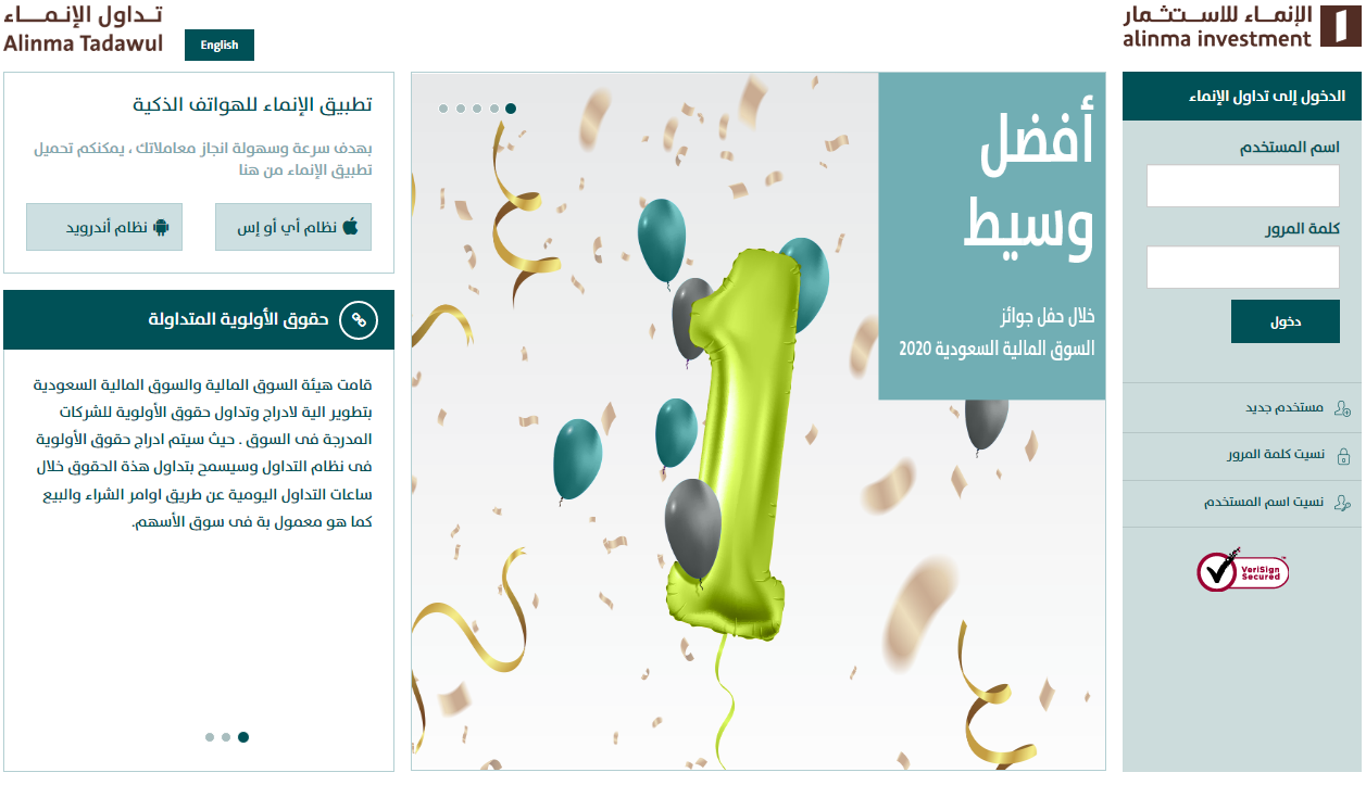 الدخول إلى تداول الإنماء alinmainvestment.com