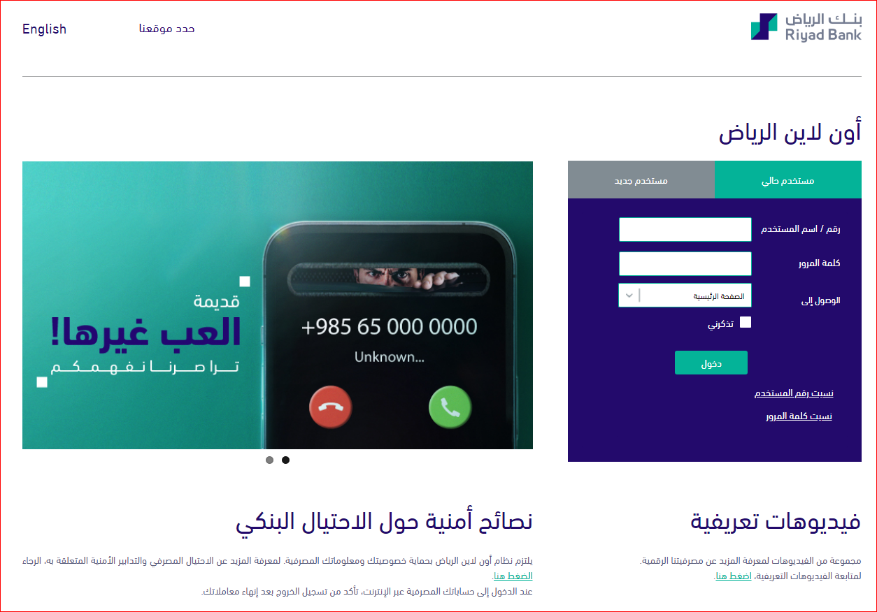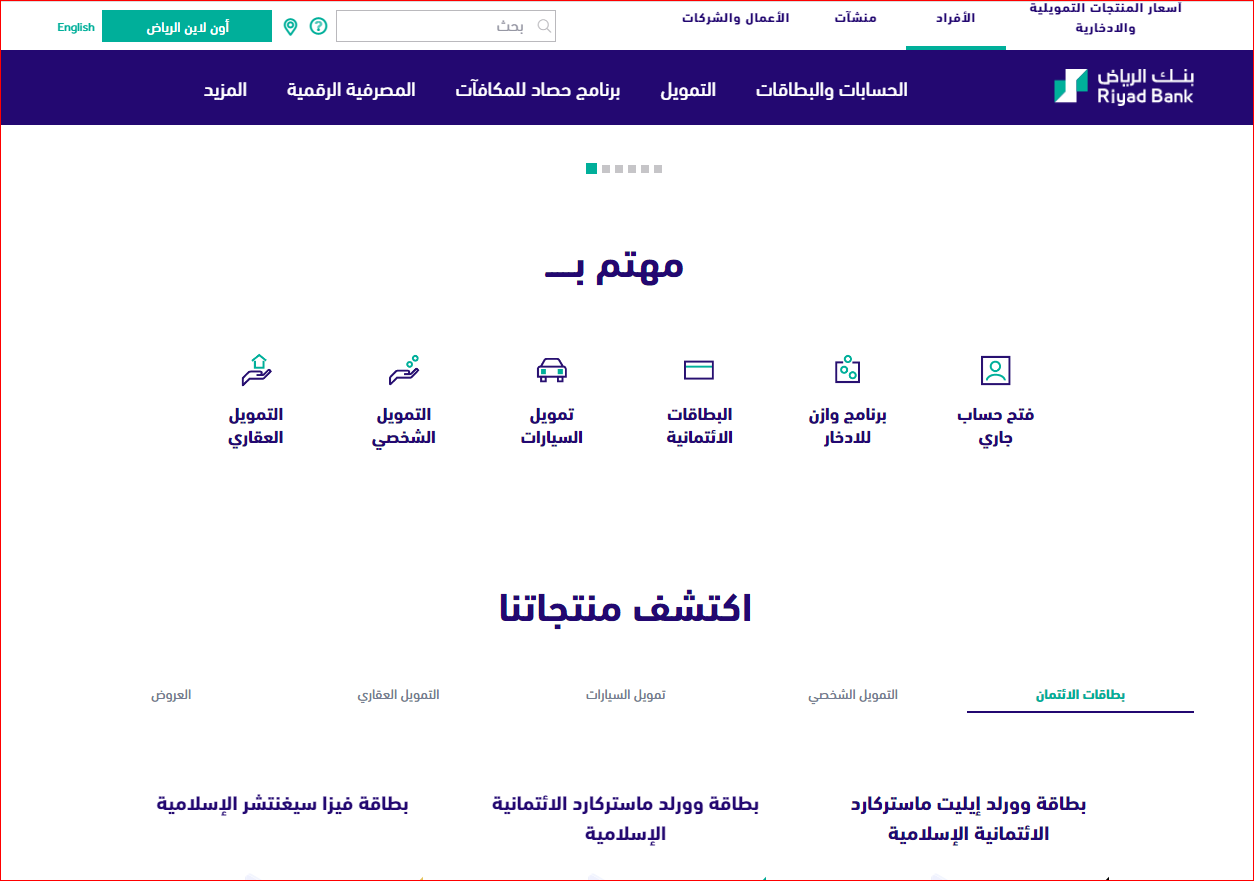 - قم بالدخول إلى الموقع الرسمي لبنك الرياض.