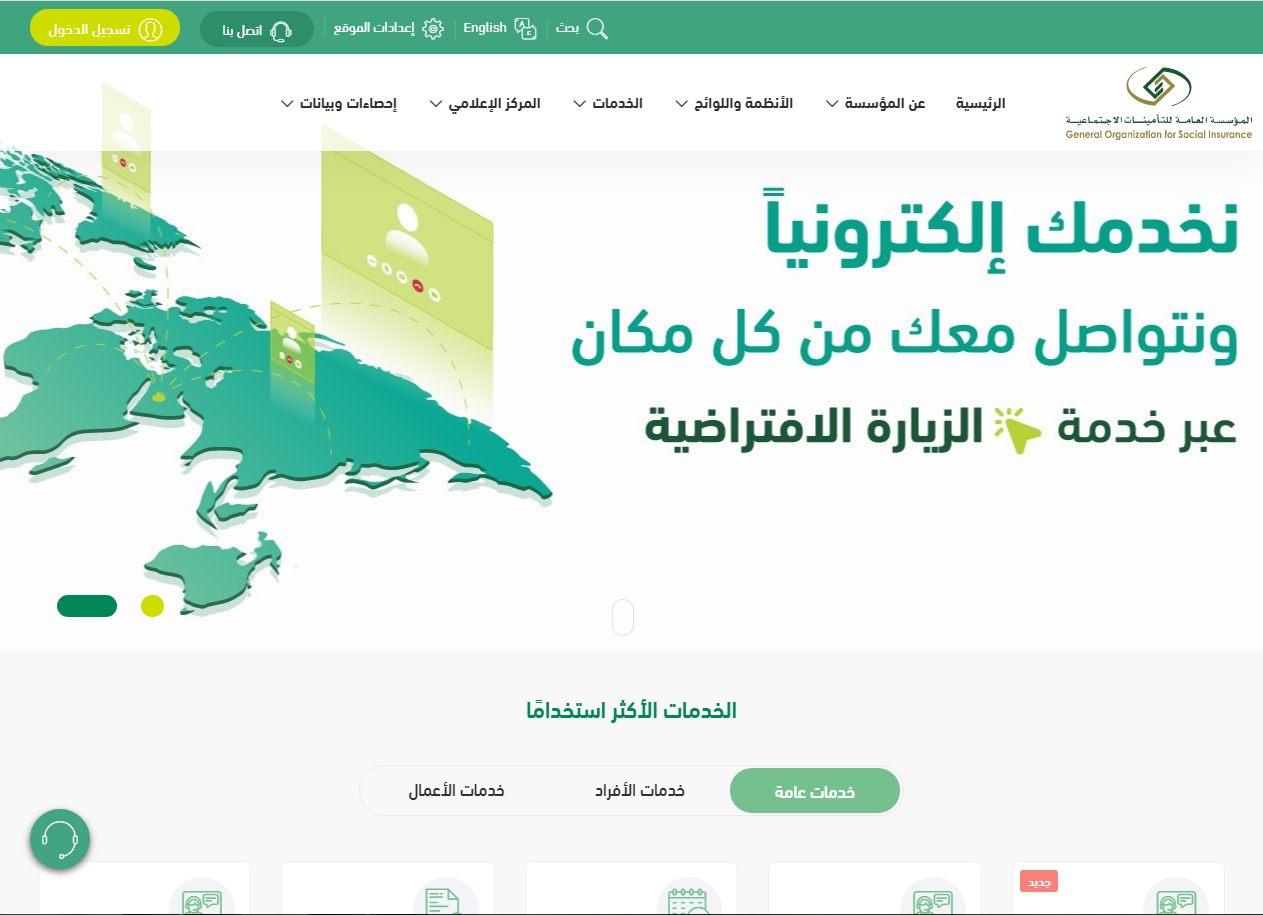 - قم بزيارة الموقع الرسمي للمؤسسة العامة للتأمينات الاجتماعية في المملكة عبر الرابط المخصص.