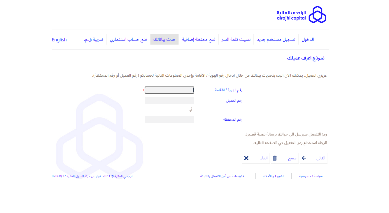 - قمّ بإدخال كافة البيانات المطلوبة منك، مثل: رقم الهوية الوطنية، ورقم العميل أو رقم المحفظة.