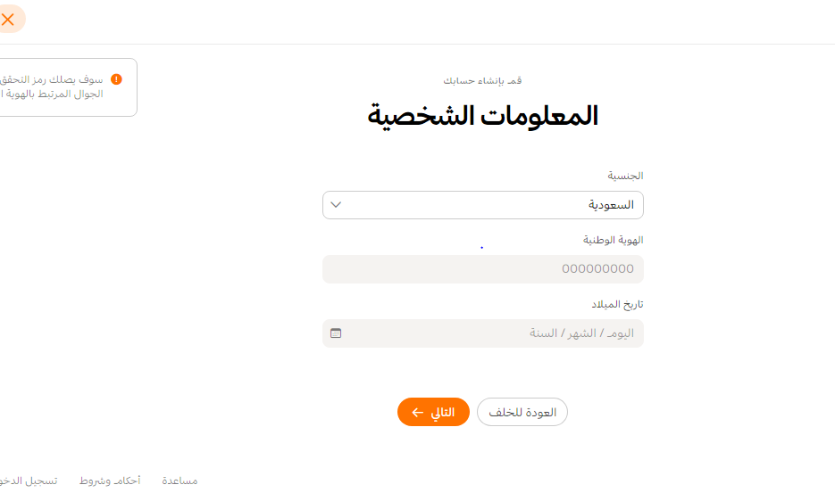 - ادخل البيانات المطلوبة (الجنسية، والهوية الوطنية، وتاريخ الميلاد).