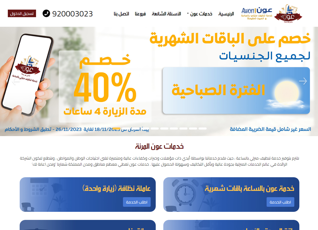 - خدمة عون بالساعة باقات شهرية.