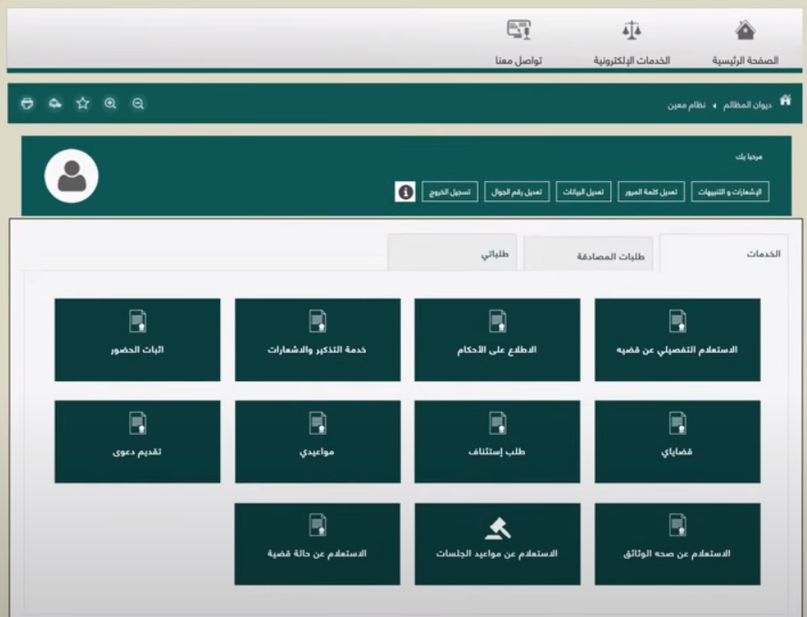 ديوان المظالم الخدمات الإلكترونية
