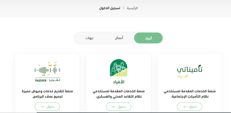 - اختيار تبويب تسجيل الدخول إلى تأميناتي أفراد.