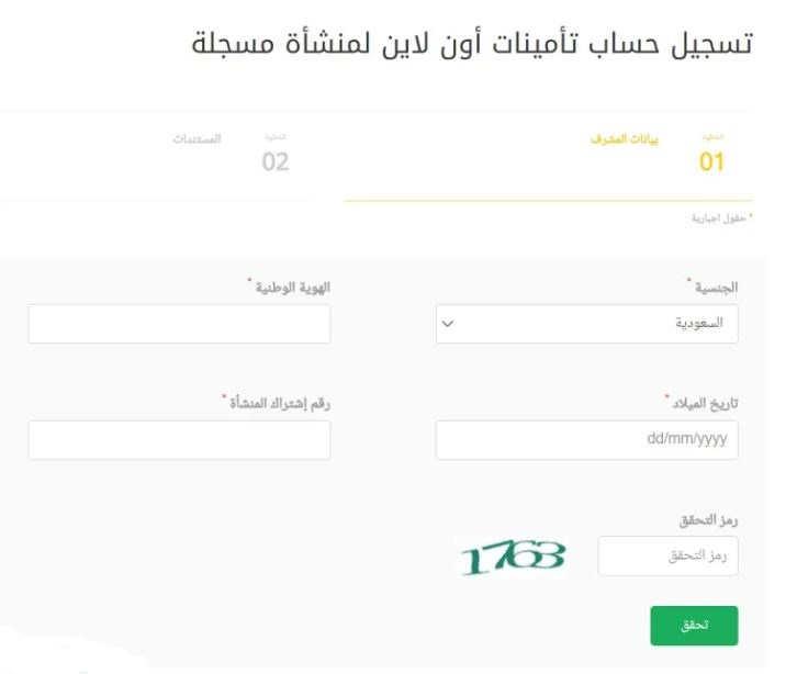 - اتباع التعليمات التي يحددها الموقع لتسجيل حساب تأمينات أون لاين لمنشأة مسجلة سابقًا.
