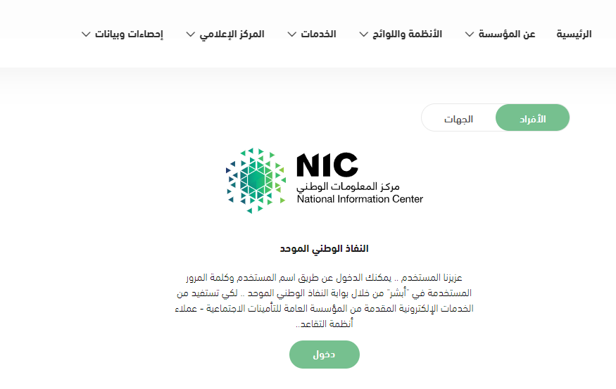 - الدخول إلى موقع المؤسسة العامة للتأمينات في السعودية.