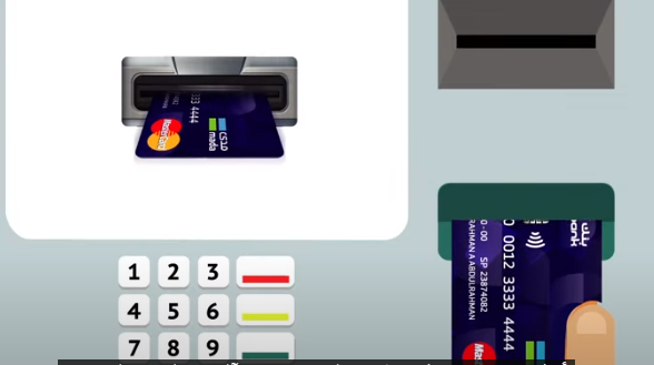 - ادخل البطاقة الائتمانية في المكان المحدد لها في جهاز الصراف.