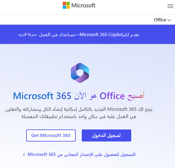 - قم بالدخول بشكل مباشر إلى أوفيس 365 من خلال الإنترنت.