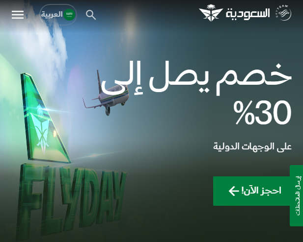 - قم بالدخول بشكل مباشر إلى الموقع الإلكتروني الرسمي لشركة الطيران السعودية من خلال الإنترنت.