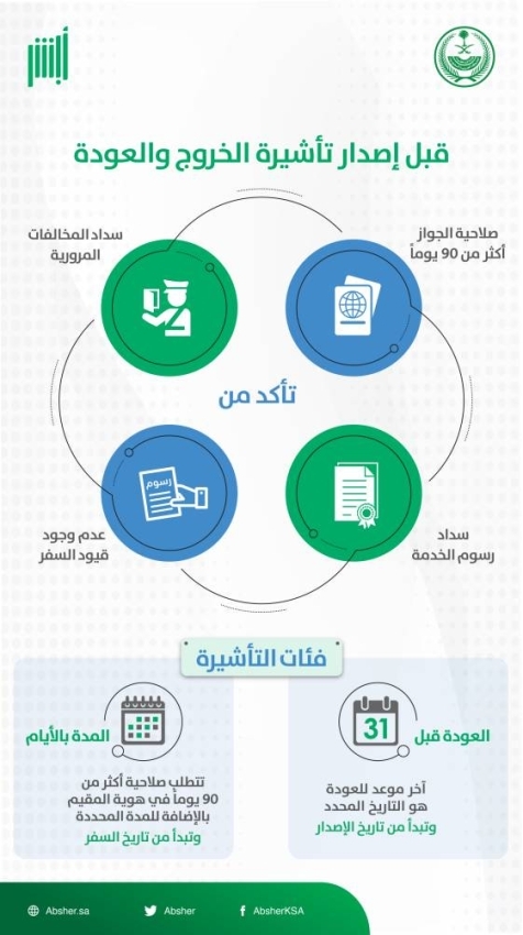 كم مدة تأشيرة الخروج والعودة قبل السفر