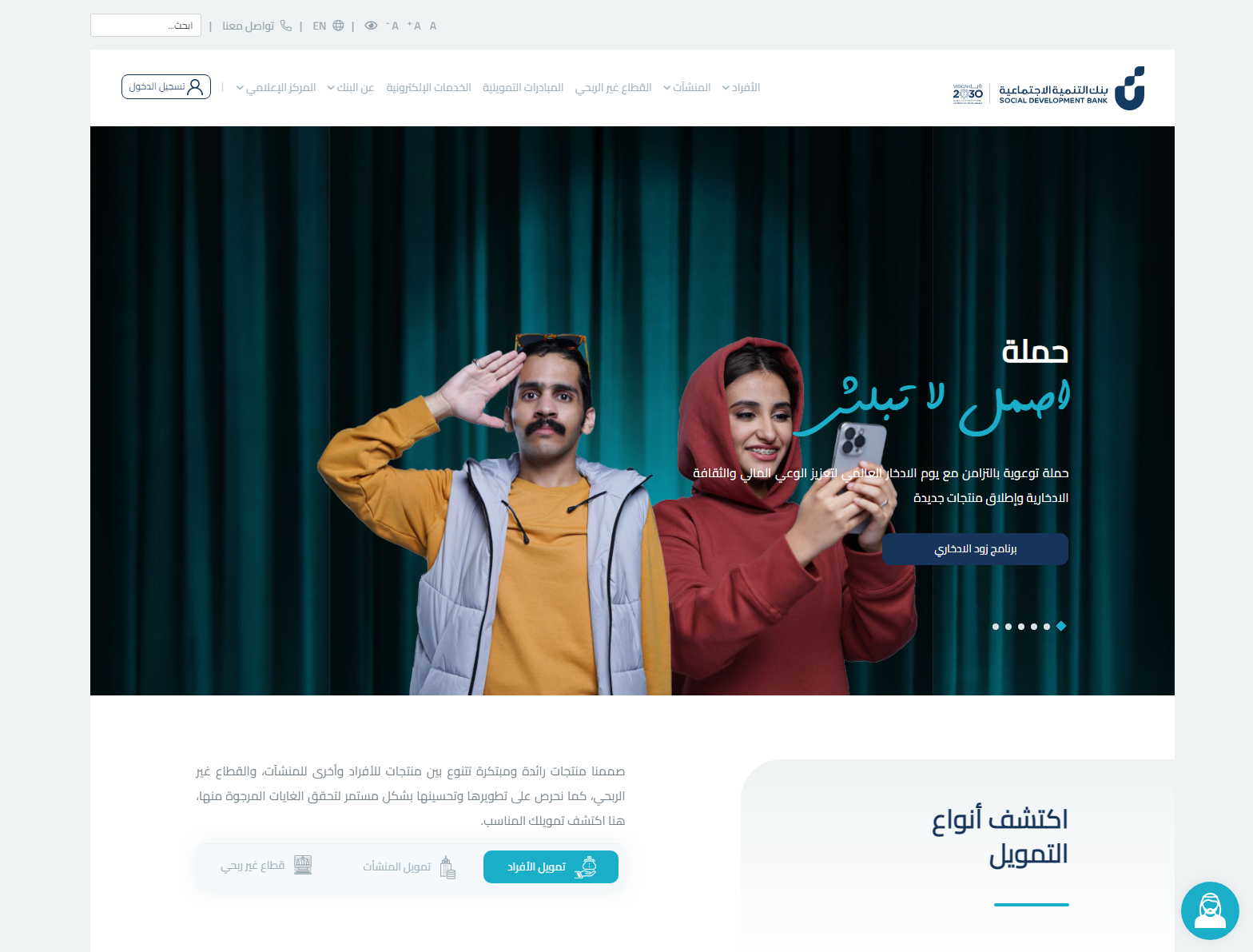 - اذهب مباشرةً إلى الموقع الرسمي الإلكتروني لبنك التنمية الاجتماعية.