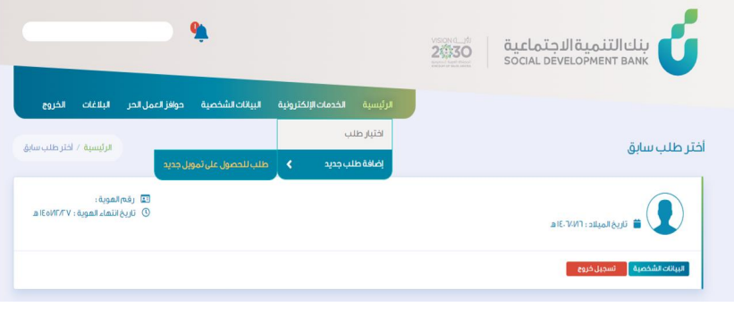 - عند إضافة طلب جديد، اضغط على خيار "طلب الحصول على تمويل جديد".