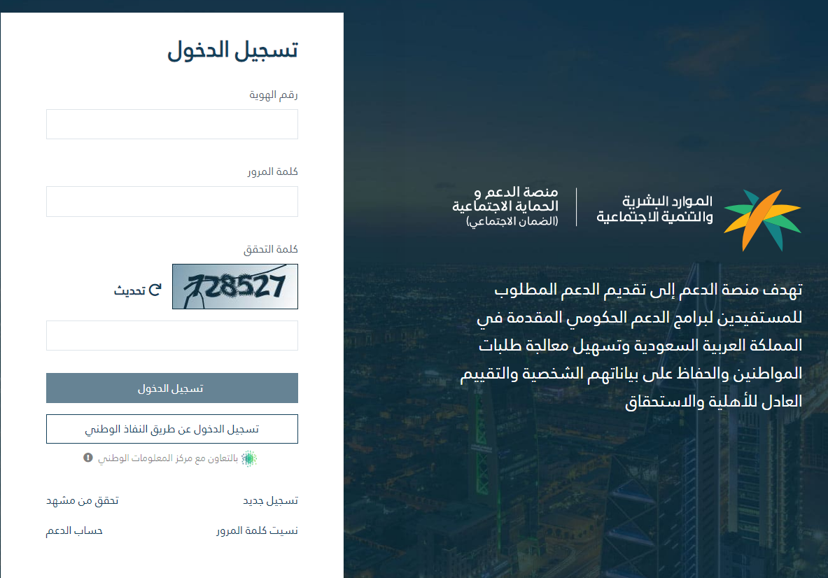 - في البداية يقوم لشخص بالدخول على الموقع الرسمي الإلكتروني الخاص بمنصة الدعم والحماية الاجتماعية الخاصة بالضمان الاجتماعي "من هنا".