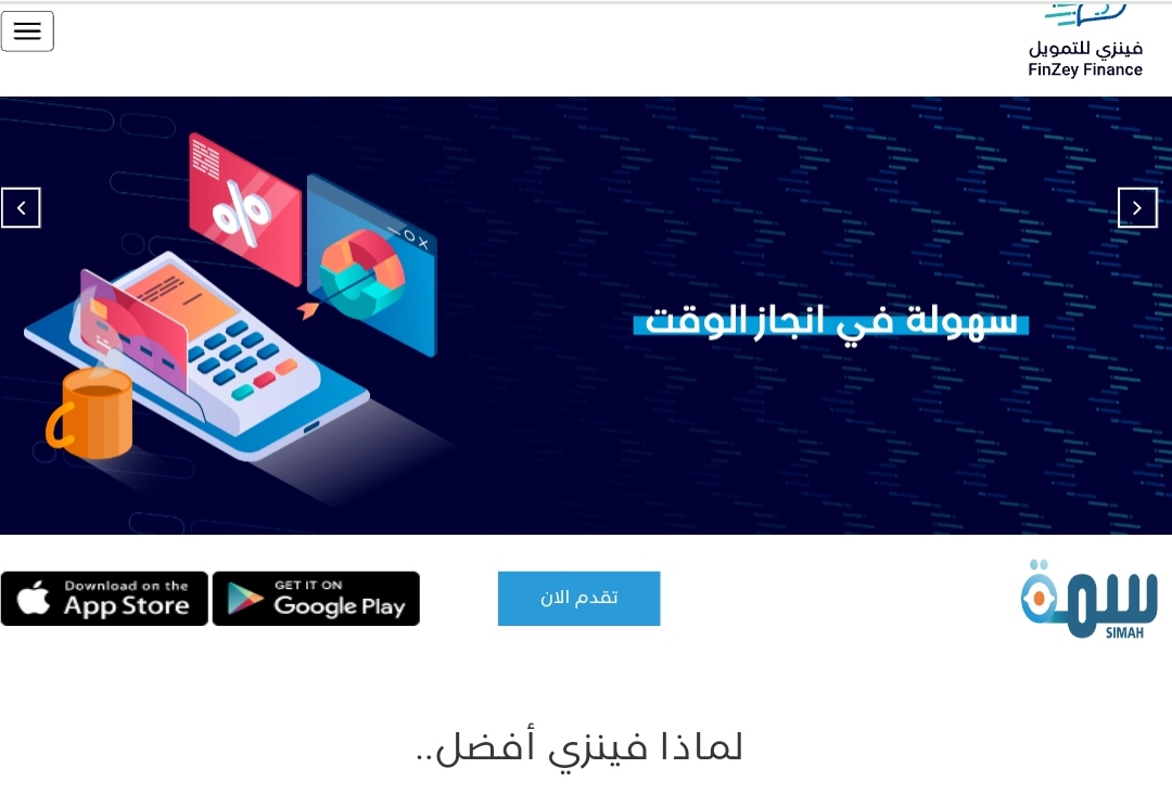 - أدخل إلى الموقع الإلكتروني لشركة فينزي للتمويل.