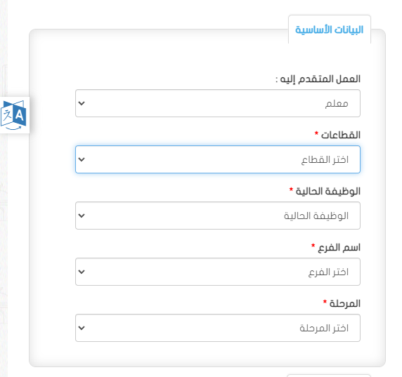 - اختيار الوظيفة المطلوبة معلم أو إداري أو عامل أو سائق.
