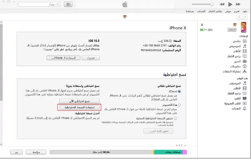 - من خلال الضغط على خيار استعادة النسخ الاحتياطي، سوف تتمكن من الحصول على ما تريد من خلال الضغط على استعادة.