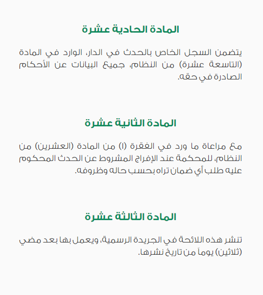 إلى هنا نكون وصنا إلى نهاية المقال الذي تعرفنا من خلاله على نظام الاحداث واللائحة التنفيذية تحميل pdf ووفرنا لكم مجموعة امتنوعة من المعلومات المتعلقة بهذا النظام وأبرز المواد الموجودة فيه.