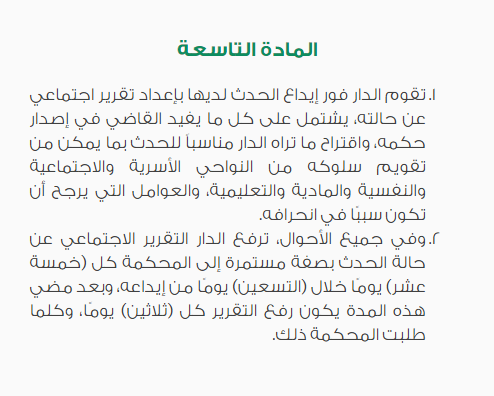في هذه المادة ينص القانون على: "عند تسليم الحدث إلى ولي أمره أو من يقوم مقامه؛ تؤخذ الضمانات اللازمة من المستلم بما يكفل الحفاظ على الحدث وعدم إيذائه".