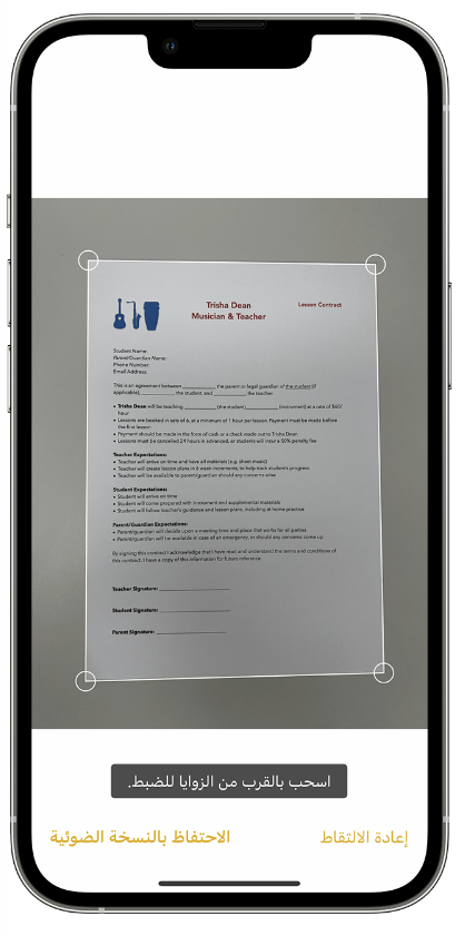 - قم بسحب الزوايا من أجل ضبط النسخ الضوئية إلى أن تتطابق مع الصورة أو المستند.