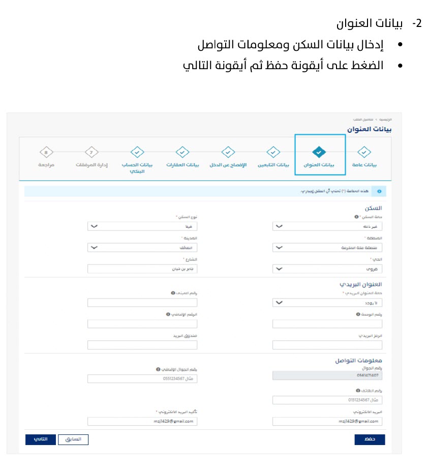 - تحديد تفاصيل العنوان البنكي والعنوان الوطني.